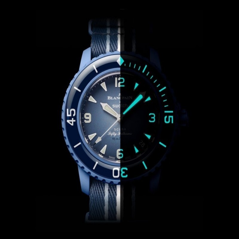 Наручний годинник Blancpain × Swatch Bioceramic Scuba Fifty Fathoms Collection ''Atlantic Ocean"